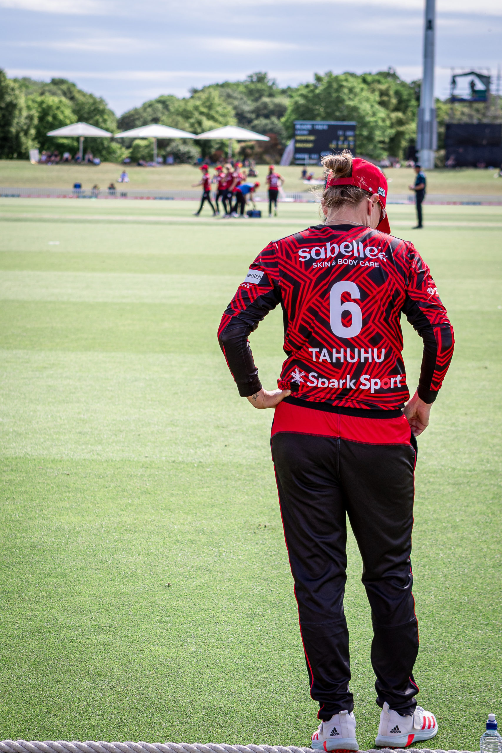 Lea Tahuhu patrolling the Hagley Oval boundary – image CCA
