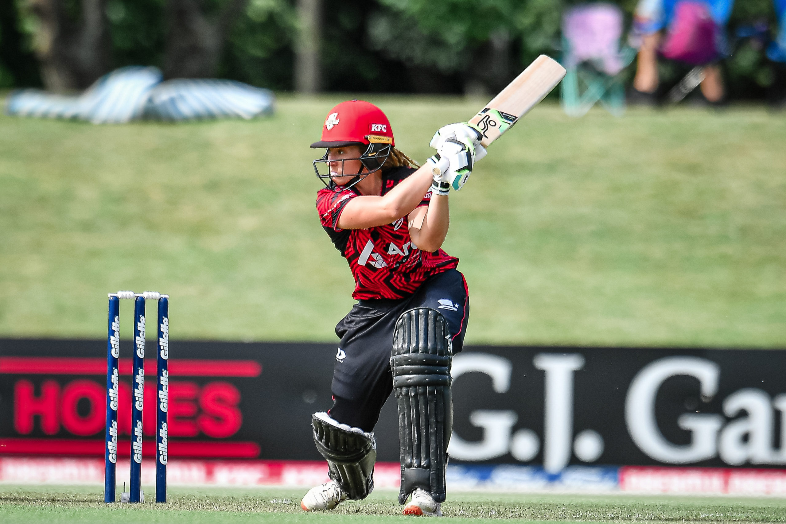 Jodie Dean of the Canterbury Magicians during the Super Smash T20 Cricket match, Canterbury Magicians Vs Otago Sparks, Hagley Oval, Christchurch, New Zealand, 26th December 2021.Copyright photo: John Davidson / www.photosport.nz