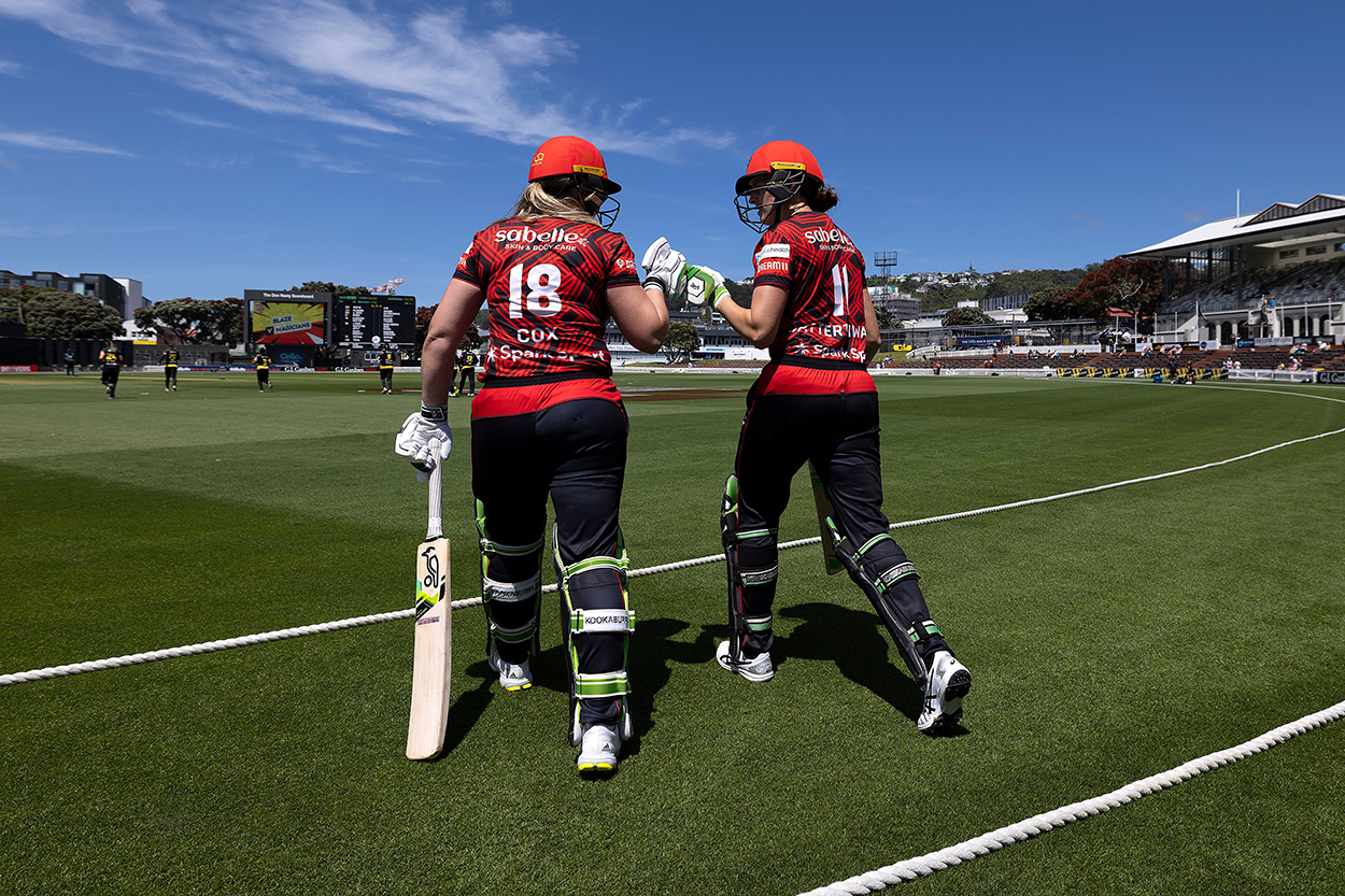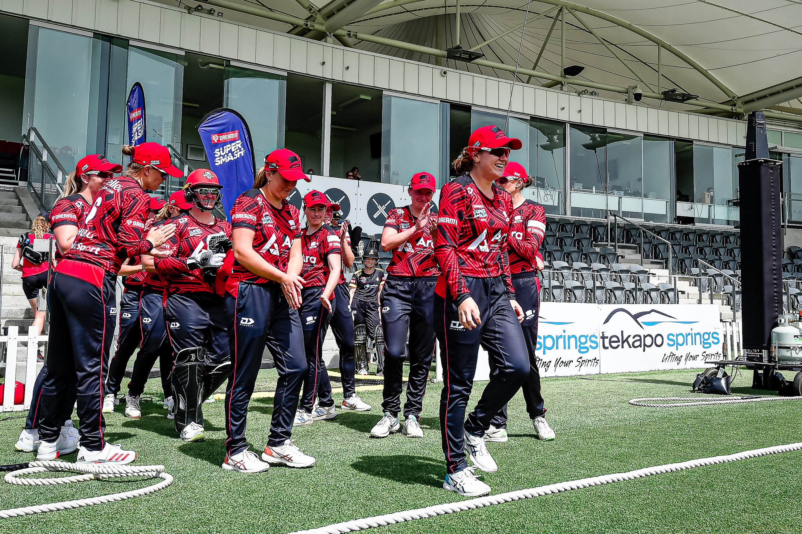 Abigale Gerken leads the Canterbury MAGICIANS to the middle of Hagley Oval to start their Super Smash campaign for 2021/22 – image – photosport